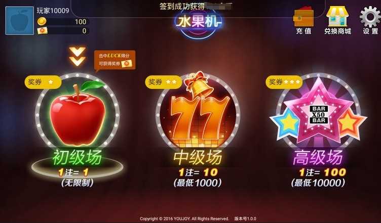 赢话费水果机官方正版是一款经典的街机游戏,通过对不同图案的押分来赢得对应赔率的金币;赢钻石可兑换话费。游戏中玩家可以每天都能获得奖励,体验不同精彩活动,喜欢就来看看吧。