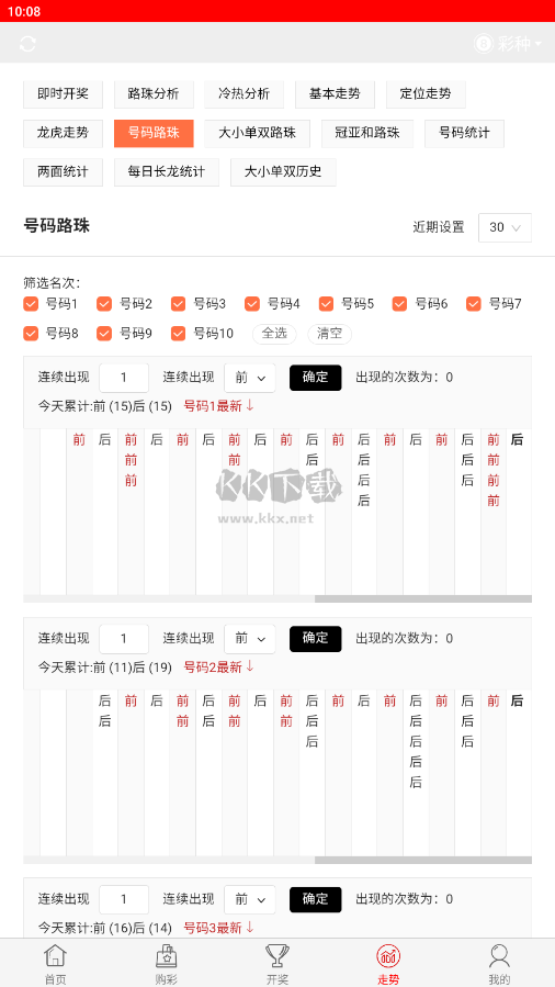 支持各彩种计划追号功能,根据历史开奖结果生成公式、直接给出分析结果,并支持计划验证,还有缩水工具,实用倍投,推波,慨率计算器,黄金分割等工具;具备图表分析,指标分析,冷热分析,遗漏分析等功能。