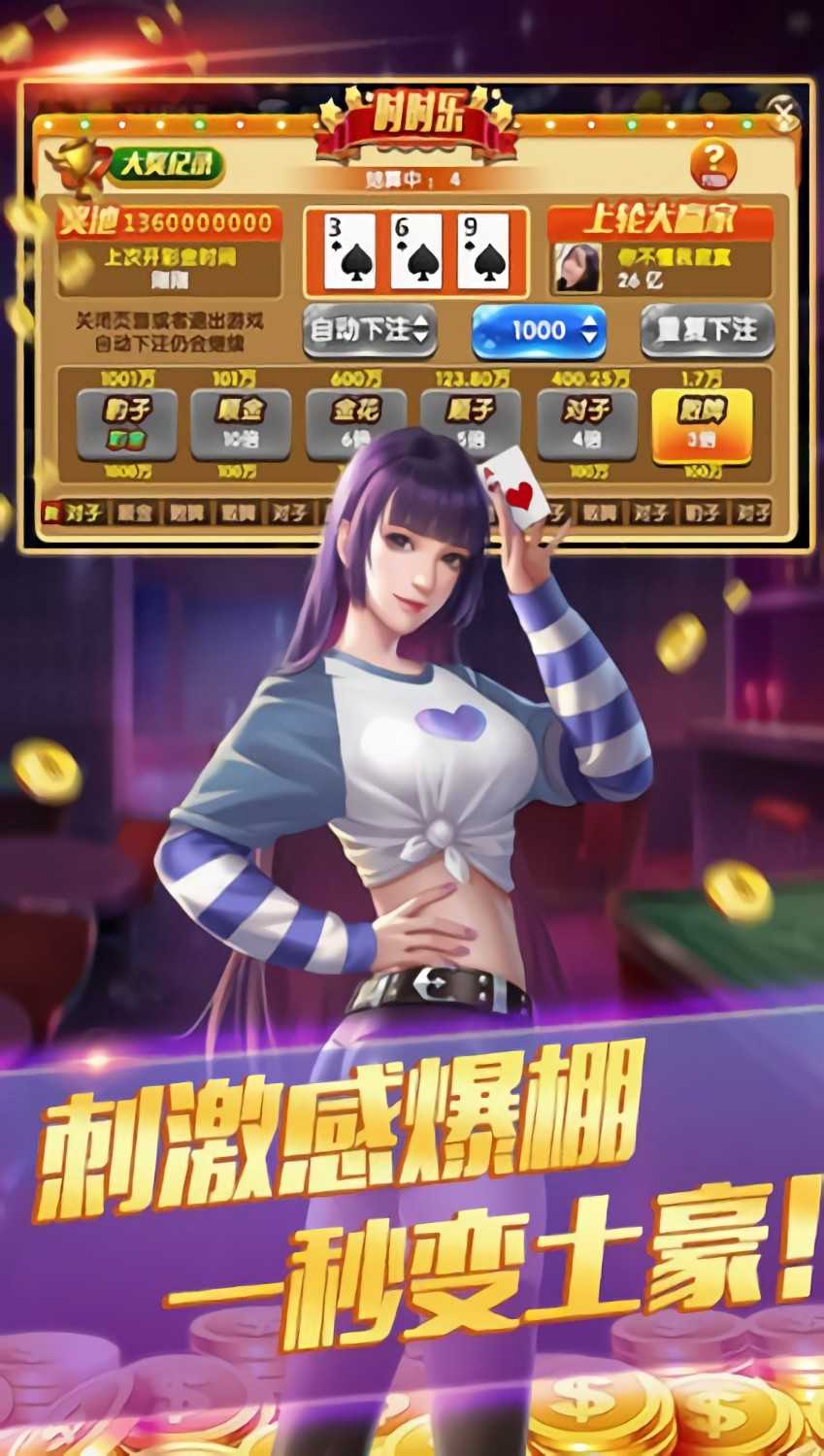 2、游戏场自由选择,一毛底还是高分底都是能挑的,翻倍可设上限,玩大赢大哦。