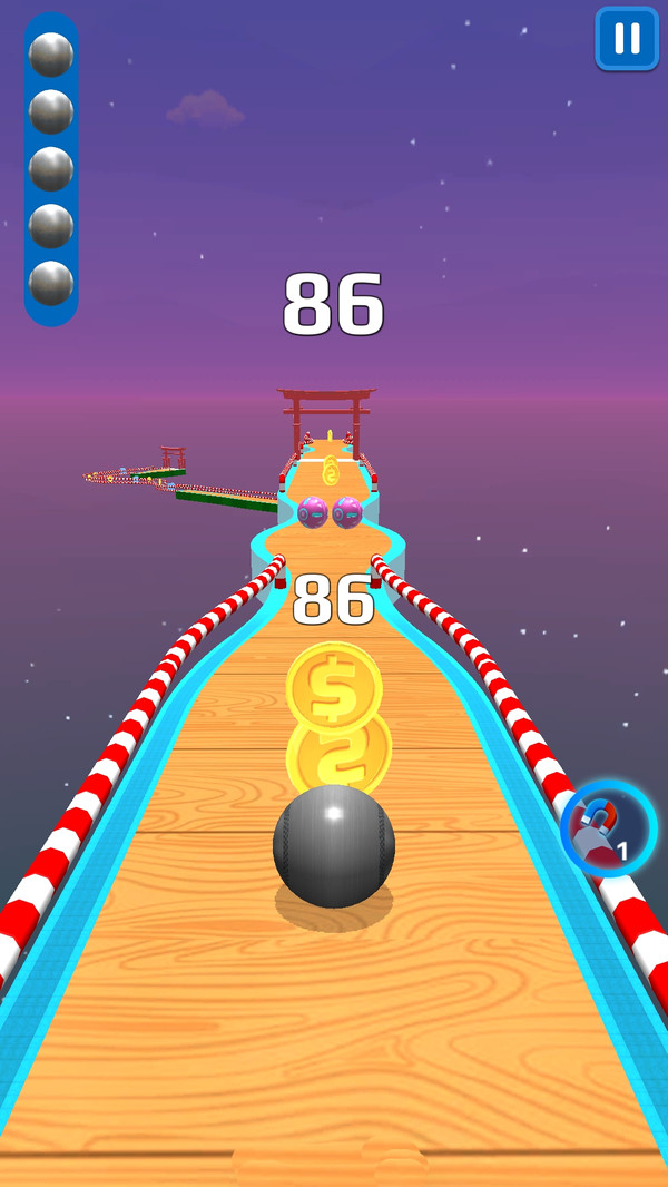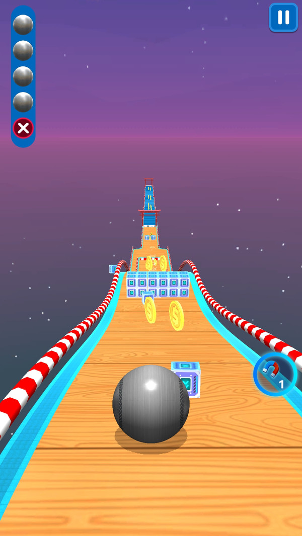 极限回旋游戏是一款操作很简单的滚球闯关游戏,每一关的赛道都不同,你只需要操控着滚球一路闯关就行,遇到障碍物的时候要快速的躲避,同时收集各种金币和钥匙,去提升你的等级,之后就能快速的过关啦,还可以自由设定背景音乐哦!