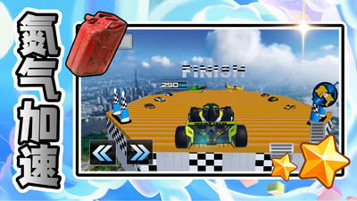 3、动态赛道元素丰富,赛道突然断裂需急刹转向,跳板触发高空翻转,竞速中穿插跑酷挑战。
