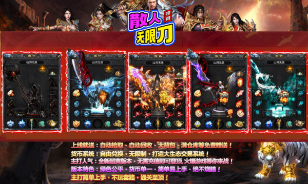 3、经典爆装机制,怪物掉落装备直接显示在地面,抢装备捡宝贝全凭手速,完美还原当年打宝激情,稀有神装可交易或拍卖。