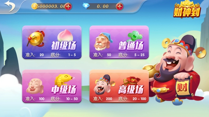 财神到游戏官网版是公平公正的线上棋牌游戏中心,这里的每一款棋牌游戏种类都是专业团队打造的,精致炫酷的游戏画面,这里的场景比较的丰富,每个场次对应的金币数量也会不同,输赢不大,喜欢的赶快来下载财神到游戏体验。